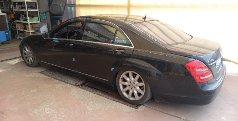 완전히 주저 앉은 메르세데스 벤츠 S500L 4매틱 정식 수입 차량입니다. 에어서스펜션이 완전히 주저 앉은 차량으로 고액의 견적을 받아 검색으로 입고한 차량입니다. 해당 차량의 경우 에어서스펜션 시스템의 문제가 많은 차량으로 S500L부터 S600 및 S350까지 파생모델이 많은 S클래스 라인업 특성상 에어서스펜션 관련 정비가 많습니다.