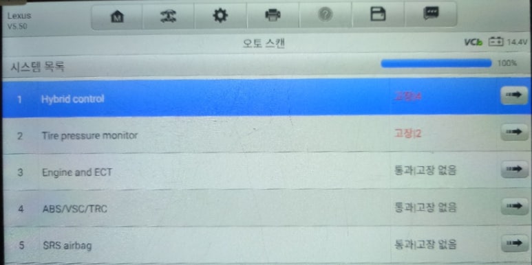 ES300h 차량의 스캐너상 주요 에러코드는 다음과 같습니다.