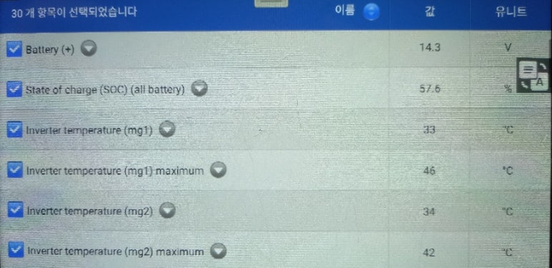 보다 정확한 진단을 위해서는 스캐너상 수치들의 내용들을 기준으로 하이브리드 시스템에 해당되는 부품들의 작동 여부에 따라서 변화하는 수치들의 값 및 변화값들을 종합적으로 판단하여 변화값 위주로 판단을 해야 정확한 고전압 배터리팩 교체를 판단할 수 있습니다. 스캐너상 에러코드만으로 고전압 배터리팩을 교체하여 문제를 해결하지 못한 사례들이 비교적 많아 저희에게 다시 입고되어 문제를 해결하는 경우도 상당 수 있다는 점이 이를 증명하는 사례입니다.
