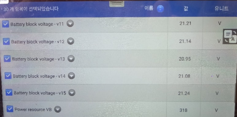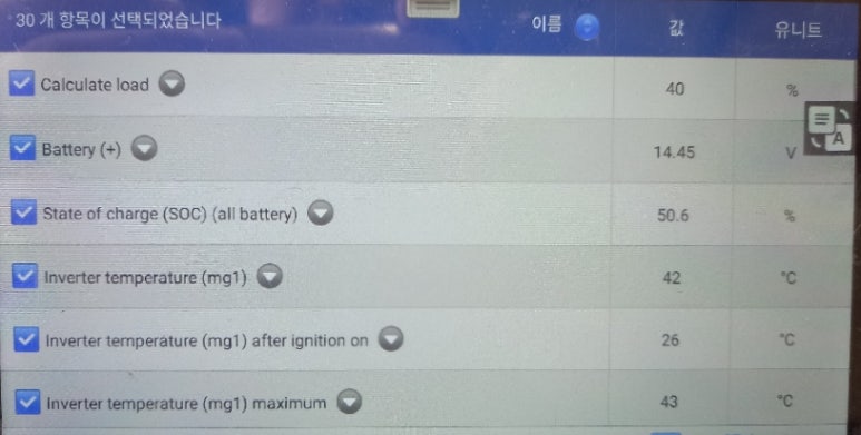 인버터의 작동 상황과 하이브리드 고전압배터리 작동 상황 그리고, 상호 작동 상황까지 모든 데이터를 종합하여 진단 결과를 얻게 됩니다. 셀블록전압의 흐름이 정상적으로 나온다고 할지라도 아이들링 상황에서는 대부분 정상적인 데이터를 표출하면서 하이브리드 전기차를 모르는 정비사 입장에서는 모두 이상이 없는 상황처럼 느껴집니다.