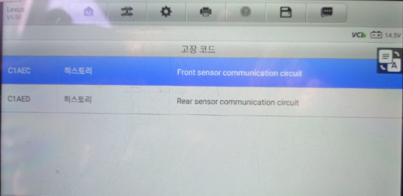 RX450h 차량의 스캐너상 주요 에러코드는 다음과 같습니다.