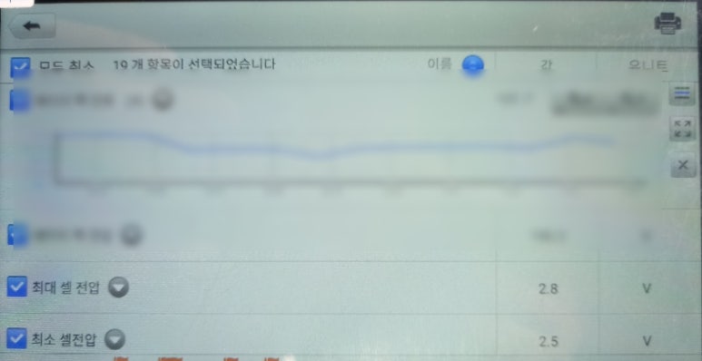 위 하이브리드 고전압배터리 데이터만 보더라도 해당 하이브리드 고전압배터리에 문제가 있다는 것을 쉽게 알 수 있습니다 해당 내용을 인지하였음으로 스캐너상 에러코드보다 더 신뢰성있는 데이터를 기초로 하여 하이브리드 고전압배터리을 진단할 수 있습니다. 문제점이 있는 데이터를 확보하였기 때문에 해당 내용을 바탕으로 하이브리드 고전압배터리에 대한 진단을 보다 깊게 들어갈 수 있습니다.