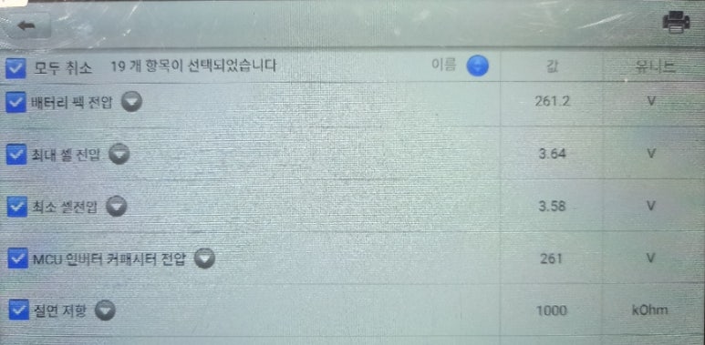 스캐너상 오토스캔을 진행하면 아무런 DTC코드가 나오지 않는 상황입니다. BMS 관련 카테고리에도 DTC코드가 나오지 않는 상황입니다. 해당 차량의 경우 증상은 있지만 DTC코드는 없는 귀신 같은 증상에 대한 진단은 정식 서비스센터 4곳을 다녀봐도 아무런 진단 의견을 듣지 못한 차주 분의 답답한 마음을 해결하고자 합니다.