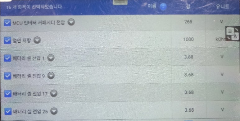 그동안 포스팅을 살펴보면 비슷한 사례가 상당히 많습니다. 이상 증상은 있으나 센터 진단은 불가능한 케이스들이 많은터라 개인적으로는 이번에도 무코드 이상 차량이 입고되었구나 하고 그냥 생각이 듭니다. 데이터를 보면 셀간 전압 편차는 0.06볼트로 아이들링 셀간 전압 편차는 이상이 없는 것으로 나옵니다. 누전 증상 수치도 아주 정상이며, 배터리 내부 상황이 다소 좋지 못한 상황으로 그렇다고해도 이상 증상이 나올 만큼 이상 데이터를 발견할 수 없었습니다.