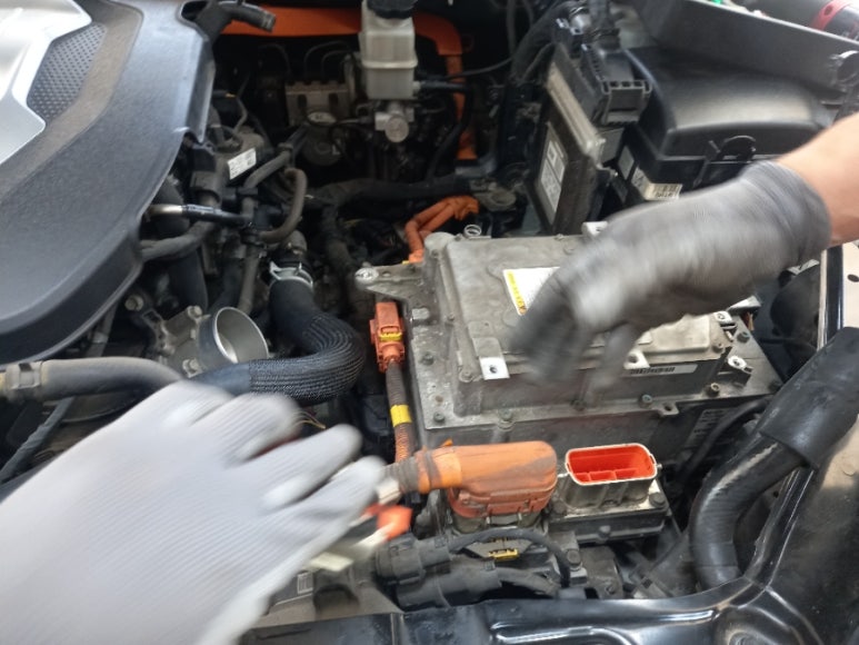 해당 차량의 경우 하이브리드 고전압배터리 시스템은 인정할 수 있을 정도의 노후화 수준이며, 작동 테스트에서는 전혀 문제가 되지 않았으며, 무엇이 먼저 고장이 난 것인지는 모르지만 인버터 손상과 구동모터 손상이 와서 동시에 교체를 해야 하는 더블 손상 차량이었습니다. 이에 대해 수리범위와 내용 및 해당 차량의 잔존가치를 설명한 후 수리에 대한 확인을 받은 후에 수리를 진행하였습니다.