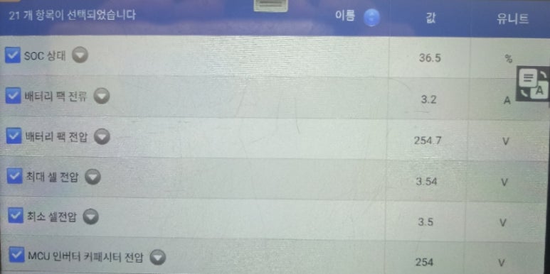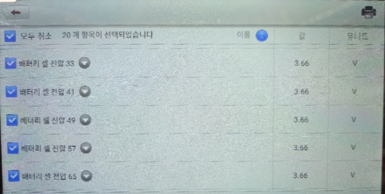 위 3가지 카테고리 중에서 이번 포스팅에 주요 카테고리는 BMS 카테고리입니다. 해당 카테고리에서 표출되고 있는 내용이 현재 해당 차량의 문제점을 나타나게한 원인입니다.
