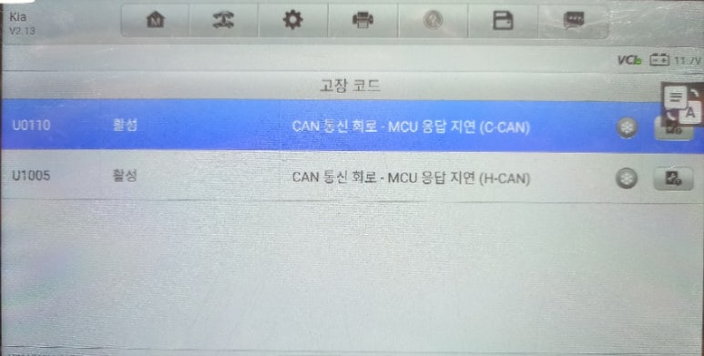 응답 지연이라는 것은 CAN 통신이 되지 않는다는 의미이며, 정확한 진단을 위해서는 U0110 및 U1005 에러코드 개별 자체를 생각하는 것보다는 응답 지연 현상에 집중하는 것이 바람직합니다. 통신이 되지 않는 원인이 어디에 있을까 하고 생각하는 것이 바람직하다는 것입니다.
