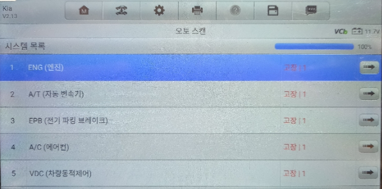 입고 상태에서 처음 스캐너상 에러코드가 8개 카테고리에서 10개의 에러코드를 표출되고 있었습니다. 해당 차량이 시동 불능 상태에서 주행을 위해서 여러 번 시도를 하다가 방전이 되면서 일시적인 에러코드부터 본질적인 에러코드까지 여러 곳에서 에러코드들이 발생한 것으로 예상되는 부분입니다.