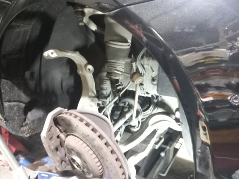 손상된 에어서스펜션을 교체할 신품 Frey 에어서스펜션입니다. Frey 에어서스펜션이 반드시 좋다는 포스팅이 아닙니다. 해당 차량에 많은 작업을 했던 제품이며, 그동안 쌓인 데이터로 가성비와 내구성이 입증된 제품이라는 점을 알리기 위한 포스팅입니다. 주변 하체 부품 탈거를 최소화하고, Frey 에어서스펜션 교체 작업을 진행 중에 있는 작업사진입니다.