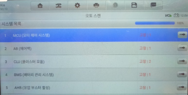 BMS 카테고리 1가지 스캐너상 카테고리에서 에러코드를 표출하고 있으며, 해당 에러코드에 대한 원인 분석 및 영구적인 또는 일시적인 에러코드들로 분류하여 정밀진단을 해야 합니다. 하이브리드 특성상 에러코드들의 신뢰도가 낮은 편이라 있는 그대로 받아들이면 안됩니다. 또한 에러코드가 표출되지 않는 부분들까지 염두하고 정밀진단에 임해야 합니다.