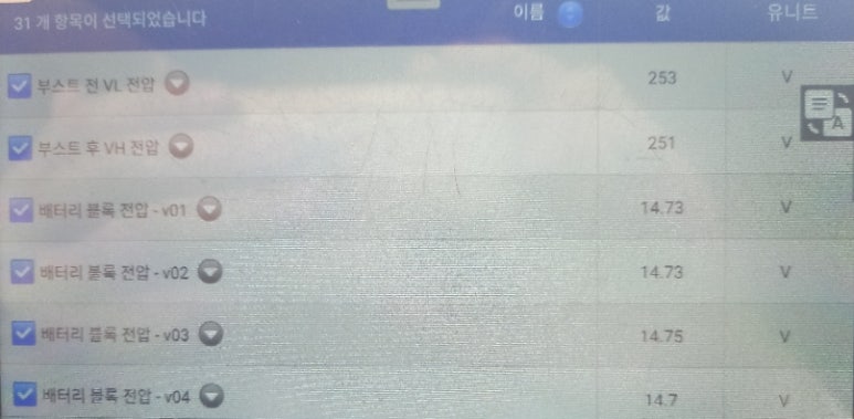 인버터 작동 상황과 하이브리드 배터리팩 블록 전압 데이터를 기반으로 하이브리드 배터리팩 건강 상태를 알 수 있는 부분들이 있습니다. 모듈 2개를 묶어서 하이브리드 배터리팩 전압센싱을 설계한 특성이 있는데, 해당 내용은 많은 데이터를 기반으로 하이브리드 시스템 안정화 작업의 초석이 됩니다.