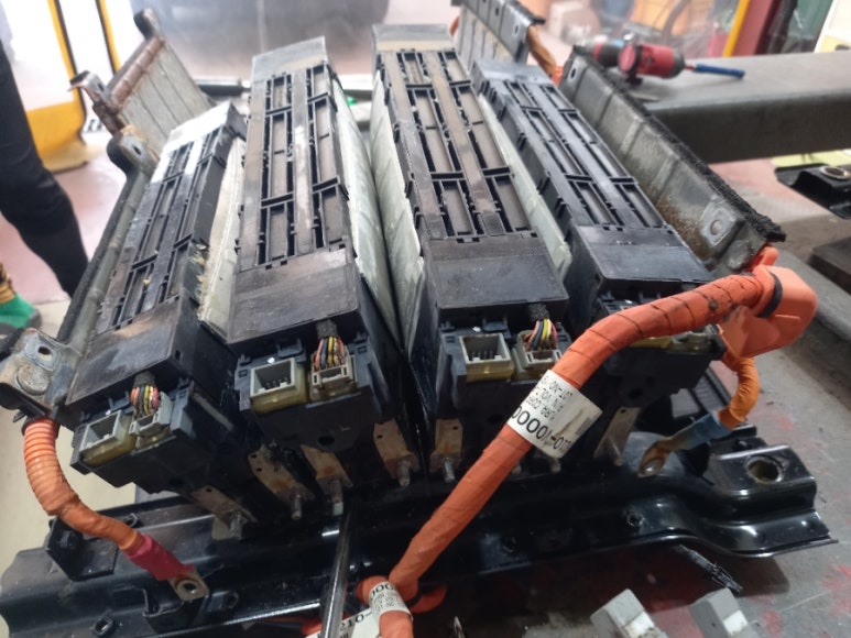 우선 문제가 있던 P1B77 에러코드와 P1BA7 에러코드 두 코드의 교집합을 발생시킨 하이브리드 고전압배터리 상태가 심각한 상황이고, 포스팅에 공개하기 그래서 하이브리드 고전압배터리 모듈을 탈거한 후 하이브리드 고전압배터리팩 골조만 남겨놓은 사진입니다. 그리고, 신품 수준의 하이브리드 고전압배터리 모듈을 장착한 후에 진단을 하게 됩니다.