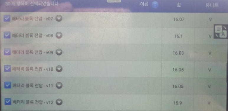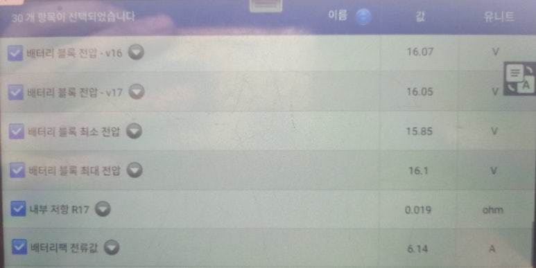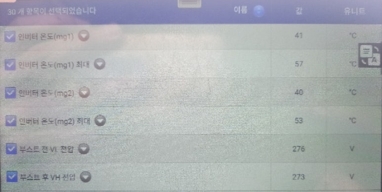 스캐너상 표출되는 수치들을 작동 상황에 따라 관찰하면서 4가지 관점에서 고전압배터리가 제대로 작동하고 있는지에 대해 확인 작업을 거쳐야 합니다. 이렇게 확인 진단 작업이 생략되면, 정식 서비스센터에서 신품으로 고전압배터리팩을 교체한다고 할지라도 2년에서 4년 사이에 다시 경고등이 들어올 가능성이 아주 큽니다.