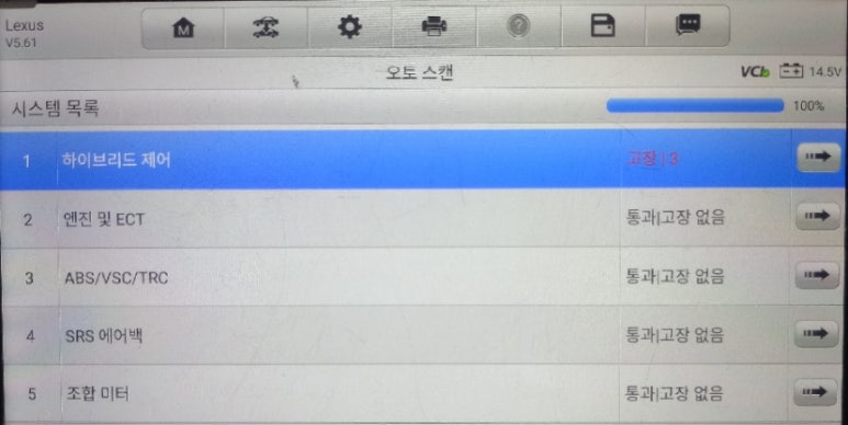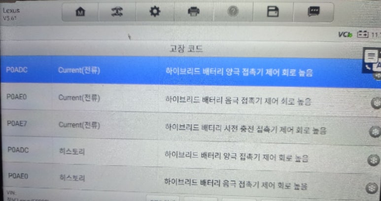 ES300h 차량의 스캐너상 주요 에러코드는 다음과 같습니다.
