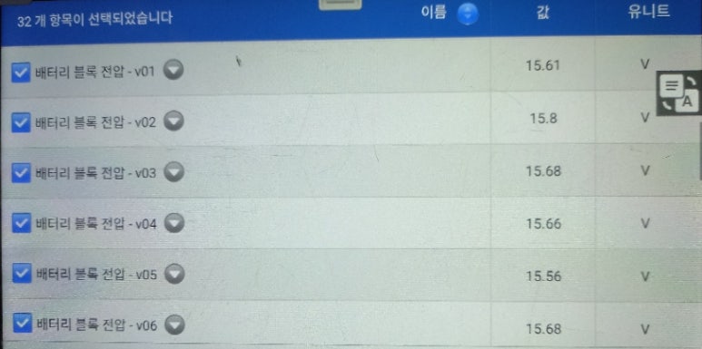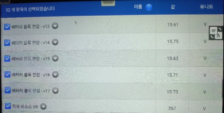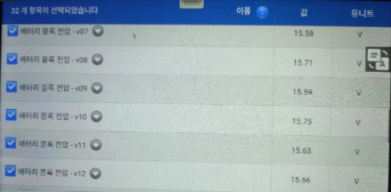 그런데, 해당 차량의 진단기상 표출된 카테고리리는 다음과 같습니다.