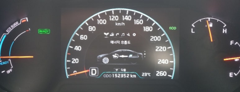 이렇게 교체된 고전압배터리 및 제어부는 계기판상으로도 정상 작동이 되고 있다는 점을 확인하게 됩니다. 고전압배터리를 교체한 후에 진단을 통하여 정확하게 하이브리드 시스템이 안정화되었는지를 확인한 후 출고하는 것을 원칙으로 합니다.