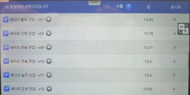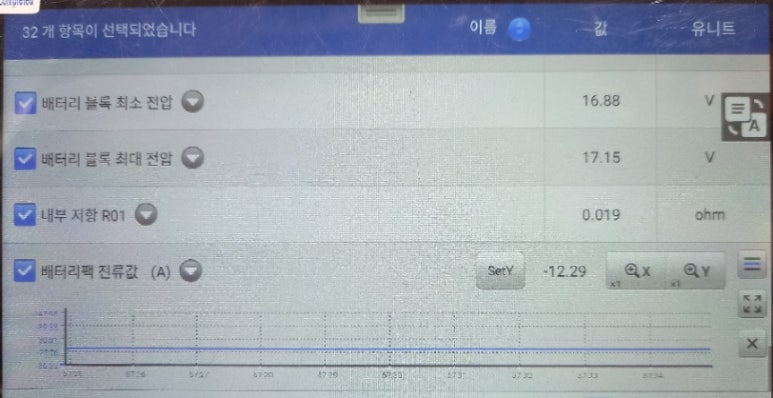 하이브리드 배터리 데이터를 살펴보면 전압수치들은 그렇게 심각하지 않으며, 기준치 이하로 아이들링 상황에서는 큰 문제가 없어 보였으며, 상황 데이터들을 종합하여 보면서 하이브리드 시스템 작동 상황을 살펴보다가 문제점을 찾았습니다.