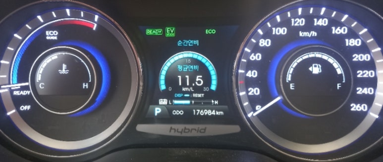 주행거리는 17만킬로를 넘어선 후 18만킬로에 다가서는 상황입니다. 해당 차량은 하이브리드 고전압배터리를 교체한 후에 연비 저하 증상이 심각해진 증상으로 중고속 주행으로 한 후에도 리터당 연비가 11.5킬로 수준으로 시내주행 위주로 봄 가을 기준 리터당 13.5킬로 이상은 나와야 함에도 불구하고 우려할만한 수준의 연비를 기록하고 있었습니다.