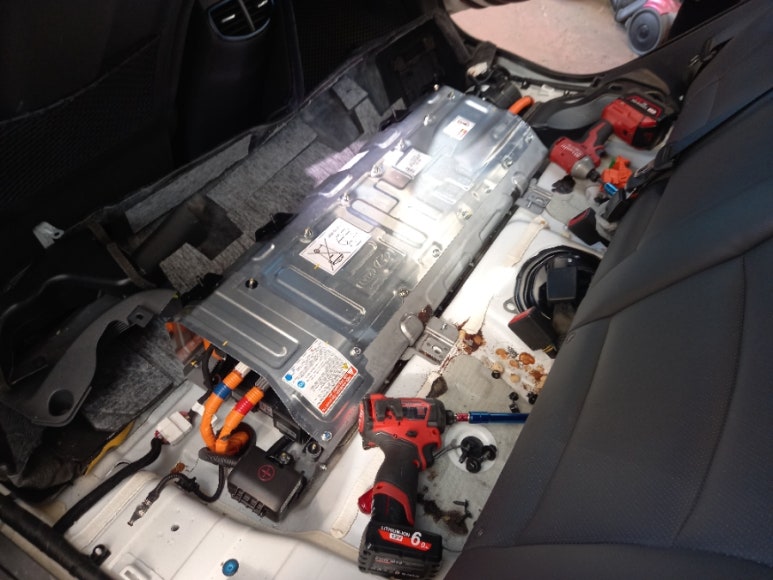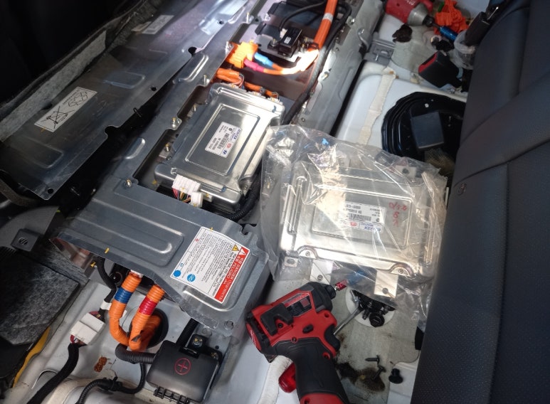 하이브리드 고전압배터리팩이 문제가 아니라 하이브리드 배터리를 제어하는 부품에서 이상 증상이 보였으며, 인버터 구성하는 부품 중 HCU 문제까지 발생한 사례입니다. 우선 하이브리드 배터리를 제어하는 부품을 확인하고, 해당 부품 교체를 위해 2열 시트를 탈거한 후 해당 부품을 교체하였습니다. 하이브리드 고전압배터리 작성 시에 적절한 전류량을 컨트롤하지 못한 문제가 원인이며, 해당 부품을 개선품으로 즉시 교체하였습니다.