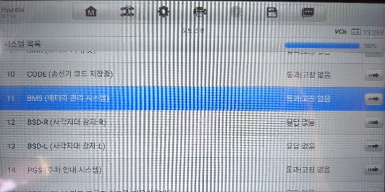 해당 원인들에 해당 하는 진단기상 BMS 카테고리를 보면 통과 고장없음으로 나오는 것을 간단하게 확인할 수 있었습니다. BMS는 배터리 매니지먼트 시스템의 약자로 배터리를 관리하는 제어부로 배터리 작동을 진두지휘하는 곳입니다. BMS의 역할은 안정적인 배터리 작동에 도움을 주며 배터리 과충전을 방지하여 배터리 손상을 최소화하는 역할이 주요 역할이지만 하이브리드 시스템 전반에 영향을 미치며, 하이브리드 시스템 오작동의 원인으로 내구성 결함을 배제할 수 없는 부품입니다.