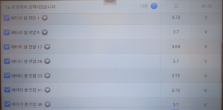 하이브리드 고전압배터리 데이터에서 일반 상황 데이터는 셀간 전압 편차에서 그렇게 큰 문제는 발생하지 않았습니다. 0.04볼트 편차 수준으로 유지되고 있었으며, 아이들링 상황에서 전장 시스템을 구간별로 점검하느라 시간이 많이 걸렸습니다. 인버터 자체 실측 점검까지 하느라 진단 범위가 넓었던 차량입니다.