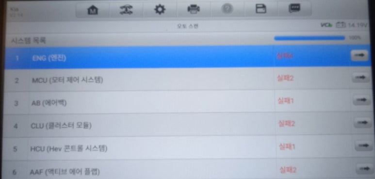 ECU TCU HCU VCU FCU ESC MCU 부품들에서 신호가 제대로 나오지 않는다는 점을 고려하면 심각한 상황으로 보입니다. 그리고 브레이크 페달 트레블 센서의 경우 신호 자체가 나오지 않는다는 에러코드입니다. 이렇게 자동차의 신경 뉴런 작용에 해당되는 부품간 통신체계가 무너졌다는 점음 심각하게 보일 수 있습니다.