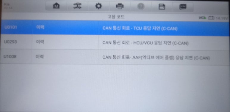카테고리보다 응답 지연 C CAN 즉, CAN 통신회로에 문제가 발생했다는 것이 중요합니다. 그리고 TCU HCU VCU AAF 부품들과 제대로 통신이 되지 않고 있다는 것이 핵심입니다.