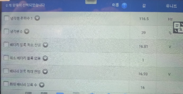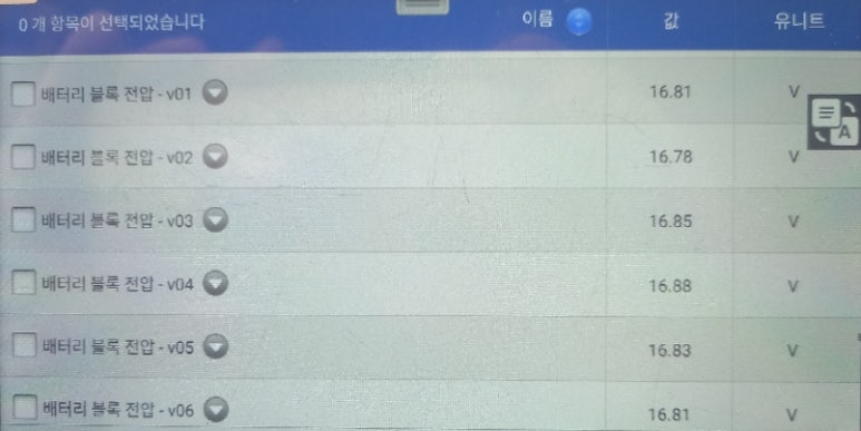 제어부를 교체한 후 배터리 모듈블록 전압 데이터를 상황별 전수 점검을 하였습니다. 하이브리드 및 전기차 점검에서 가장 중요한 것은 작동 상황별 데이터 점검입니다. 이 과정을 거치지 않고 배터리팩을 교체할 경우 불필요한 정비비용을 지출할 수 밖에 없습니다. 이 피해는 전부 차주 분에게 전가됩니다.