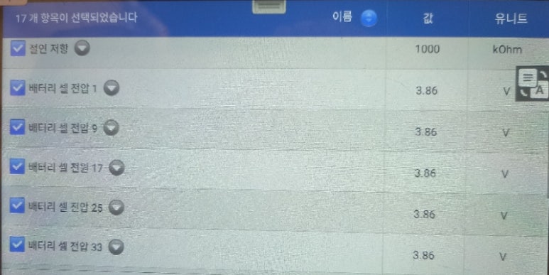 해당 차량의 경우 위 데이터를 보면 최대 셀전압 및 최소 셀전압 편차만 봐도 P1B74 에러코드가 아니라 P1B84 또는 P1B96 에러코드를 표출해야할 상황입니다. P1B74에러코드 내용처럼 센싱라인 단선이 아니라 셀전압 편차 이상 또는 센싱 이상이 되어야 맞으나 그동안 블로그에서 강조해왔던 현대기아 하이브리드 특성다운 에러코드 신뢰도 30% 수준을 입증하는 케이스입니다.