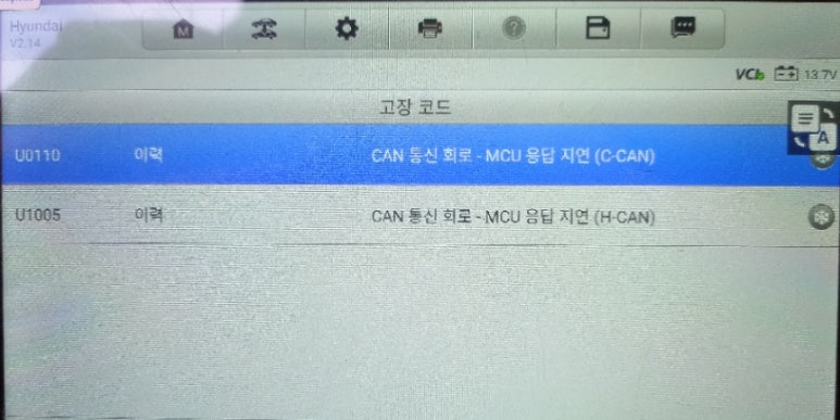 진단 스캐너를 통해 U1116 코드 외에 추가적인 관련 코드가 있는지 확인하고, 각 모듈의 실시간 데이터(데이터 스트림)를 분석하여 특정 모듈의 응답 지연이나 이상 신호를 포착합니다. HCU, BMS, LDC 등 하이브리드 관련 카테고리 전반에 걸친 수치 점검이 필요합니다.