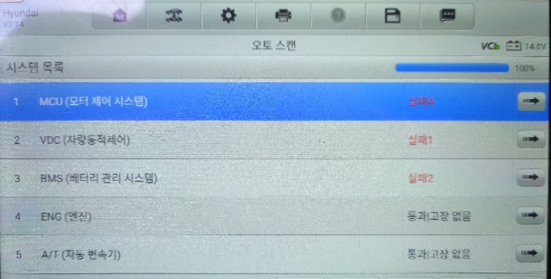 하이브리드 제어 장치(HCU), 배터리 관리 시스템(BMS), 모터 제어 장치(MCU) 등 특정 모듈 자체가 내부적인 문제로 인해 정상적인 통신을 수행하지 못할 수 있습니다. 이는 모듈 내부 부품의 수명 문제, 소프트웨어 오류, 또는 전원 공급 불안정 등 여러 요인에 의해 발생합니다. 간혹 스캐너 자체의 오류로 인해 진단이 불분명한 경우도 있을 수 있습니다.