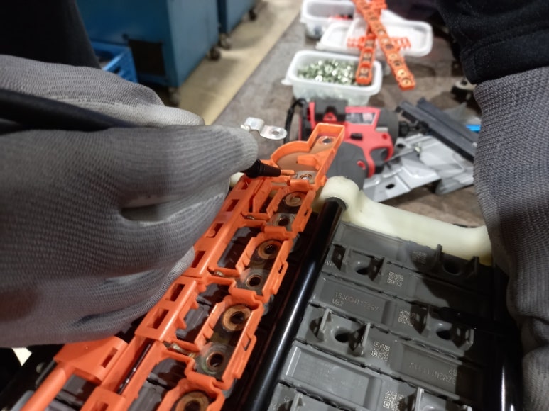 모든 배터리 팩을 통째로 교체하는 대신, 열화된 특정 배터리 셀만을 교체하고 전체 팩의 밸런스를 재조정하는 재생(리빌딩) 방식이 있습니다. 이 방법은 서비스 센터의 전체 교체 비용보다 훨씬 경제적이며, 폐기물 처리에 대한 환경적인 문제점을 줄일 수 있어 국가적으로도 중요한 사업입니다. 배터리 재생 전문 업체에서는 모든 셀의 검수를 마친 후 덴트라이트 파쇄 작업, 용량 확인, 셀 포지셔닝, 배터리 팩 조립, 그리고 셀 밸런싱 과정을 엄격하게 거쳐 재제조 작업을 마무리합니다