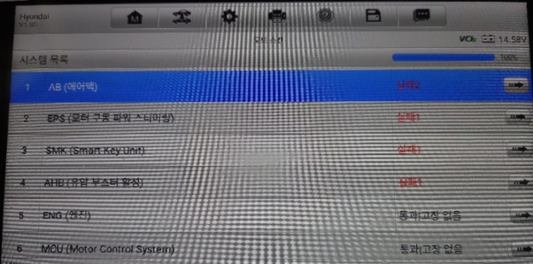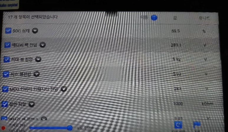전문 OBD 스캐너를 활용해 관련 DTC 코드 확인 및 실시간 데이터 파라미터(전압 센서 수치, 배터리 셀 밸런스, BMS 통신 상태 등)를 점검해야 합니다.
