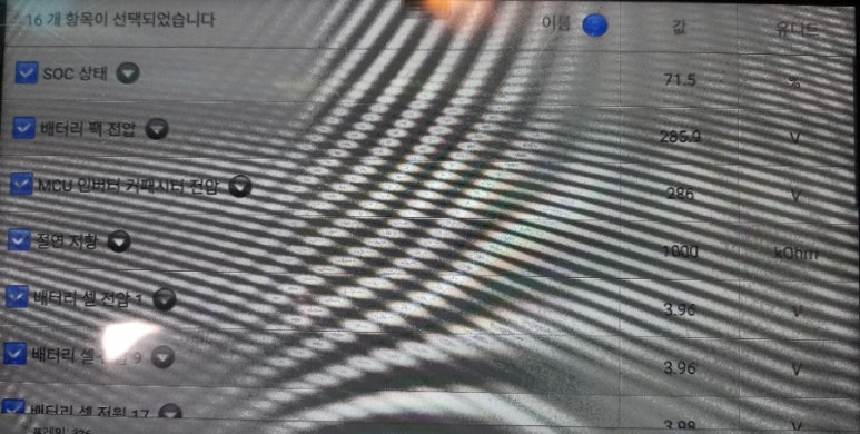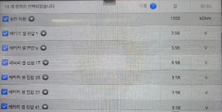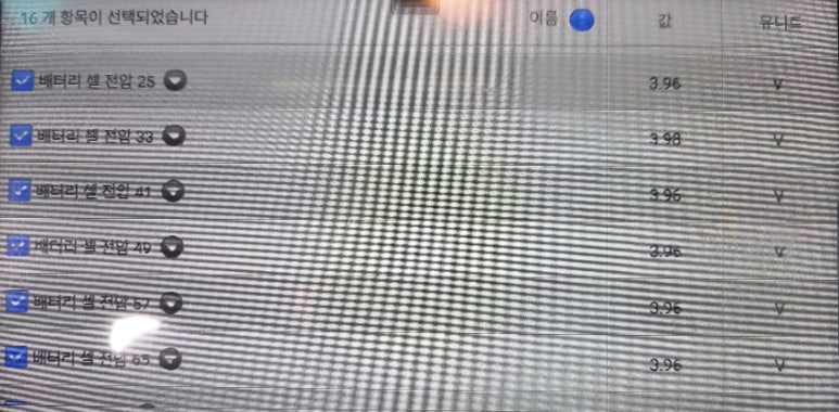 셀 간 전압 편차가 크다는 것은 일부 셀에 이상이 있거나 노화가 진행되고 있다는 신호입니다. 반대로 편차가 매우 작고 신품 수준이라면, 배터리팩 개별 셀의 상태는 매우 건전하고 균일하다는 의미입니다.